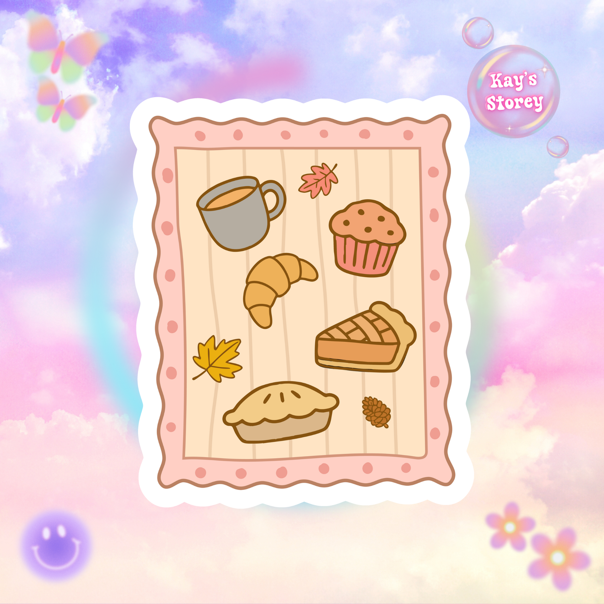 Add a cozy autumn vibe to your laptop or journal with this kiss-cut sticker featuring Autumn fashion accessories. Perfect for book lovers and those who enjoy the fall season. Ideal for decorating for Halloween or Thanksgiving.