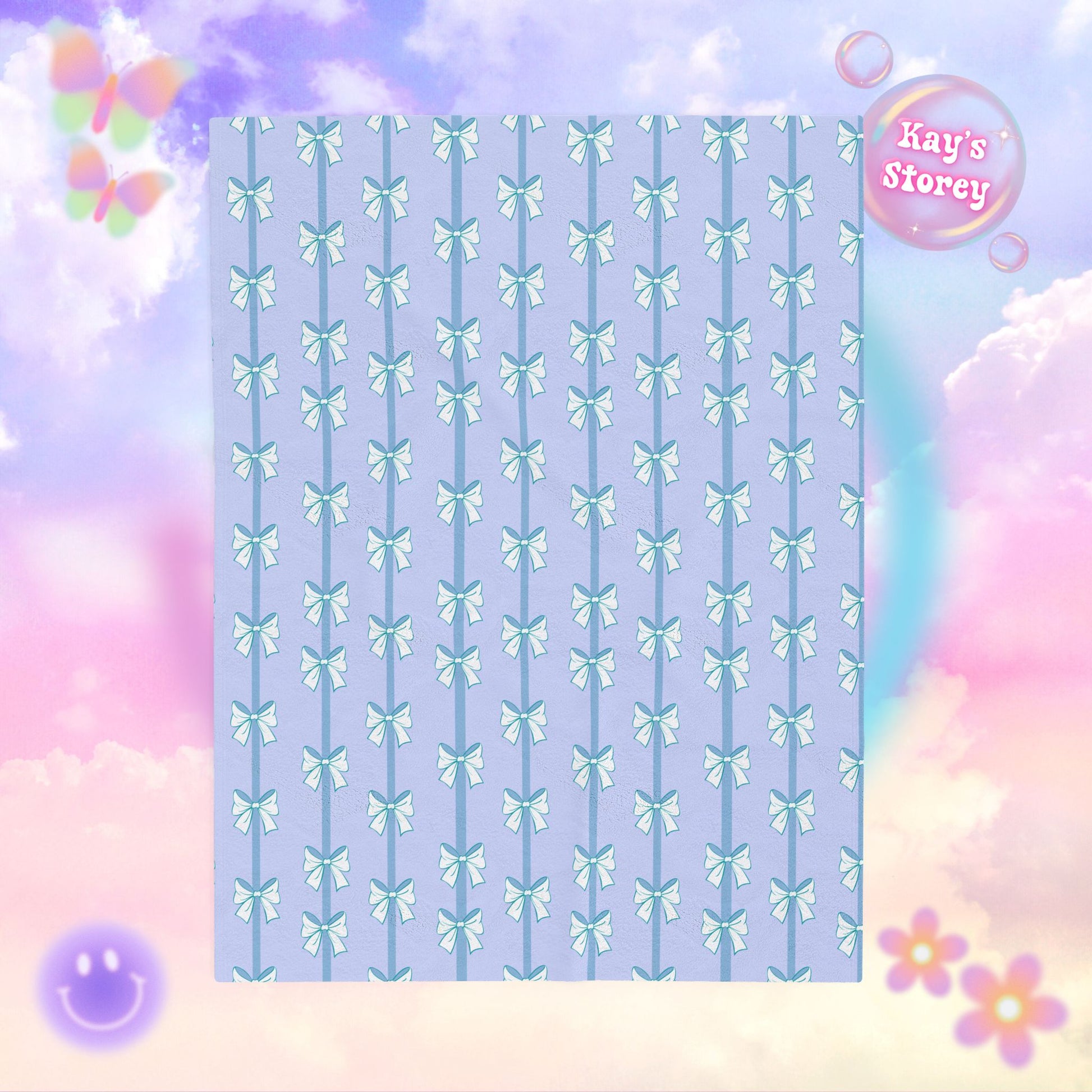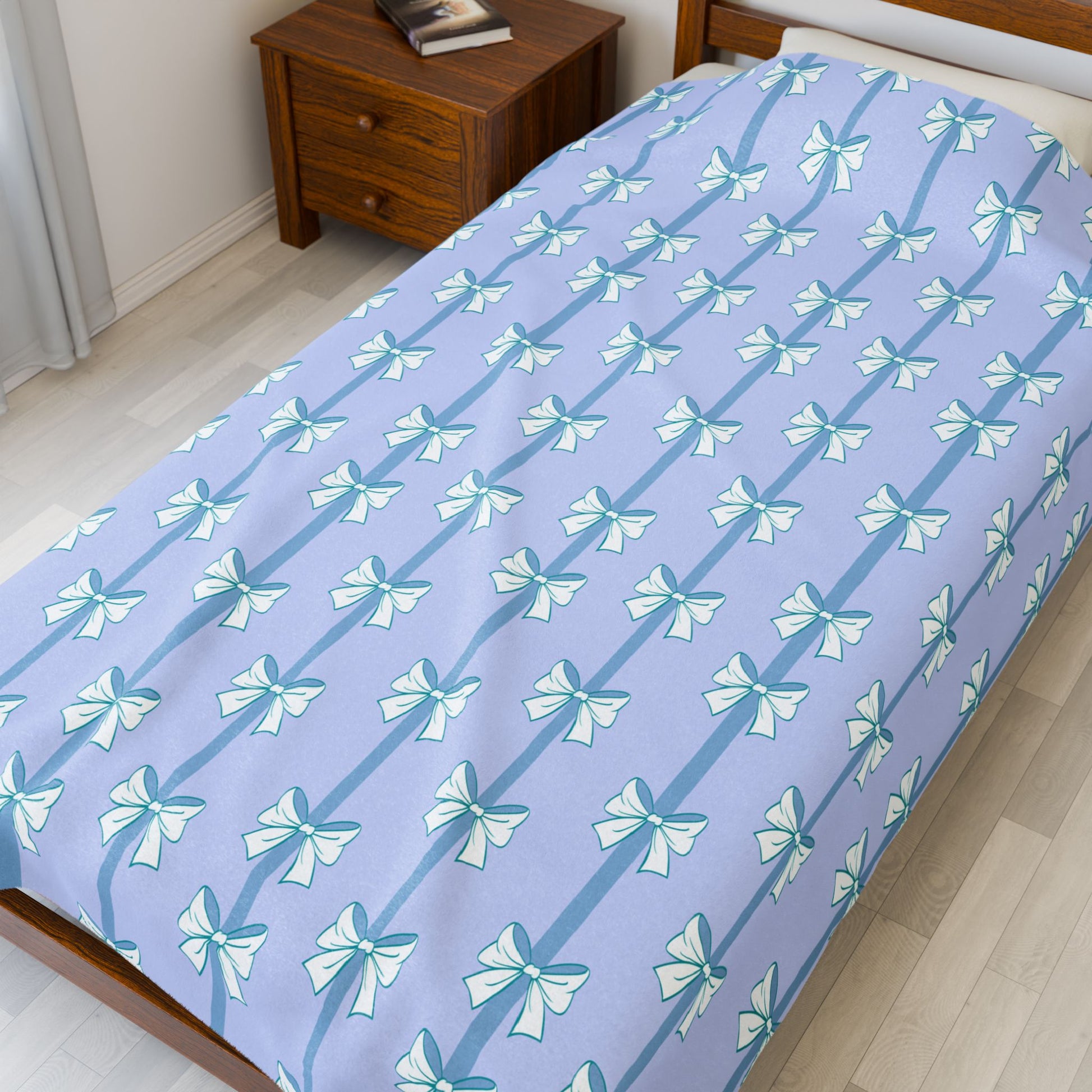 Blue Bows Bookish Velveteen Plush Blanket - Cozy Reading Throw
