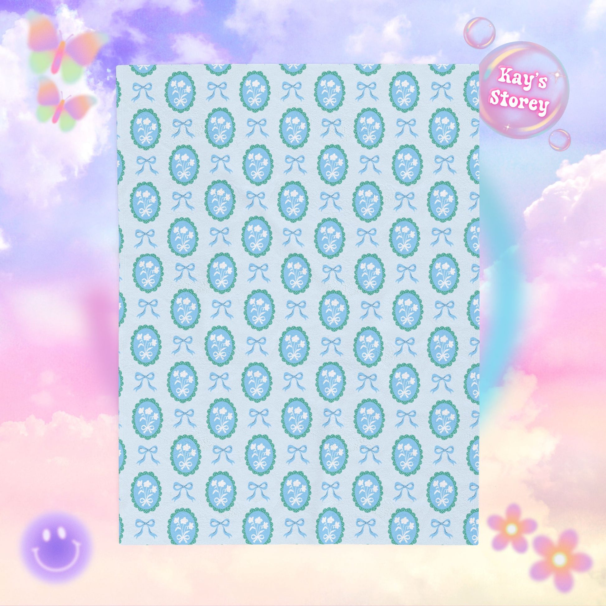 Blue Floral Coquette Bookish Velveteen Plush Blanket - Cozy Reading Throw