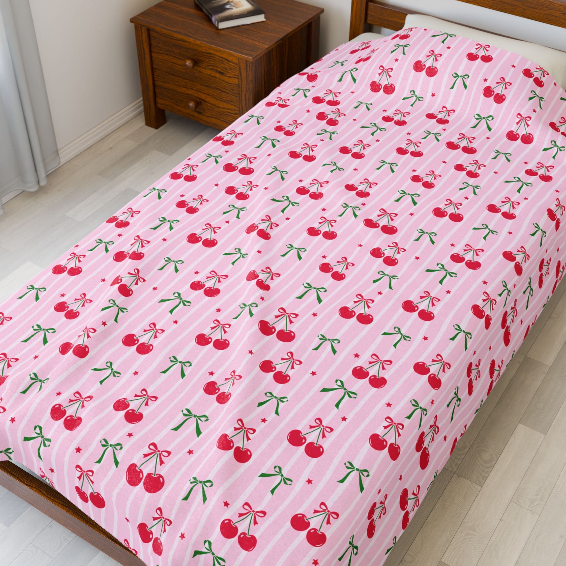 Christmas Cherries Bookish Velveteen Plush Blanket - Cozy Reading Throw