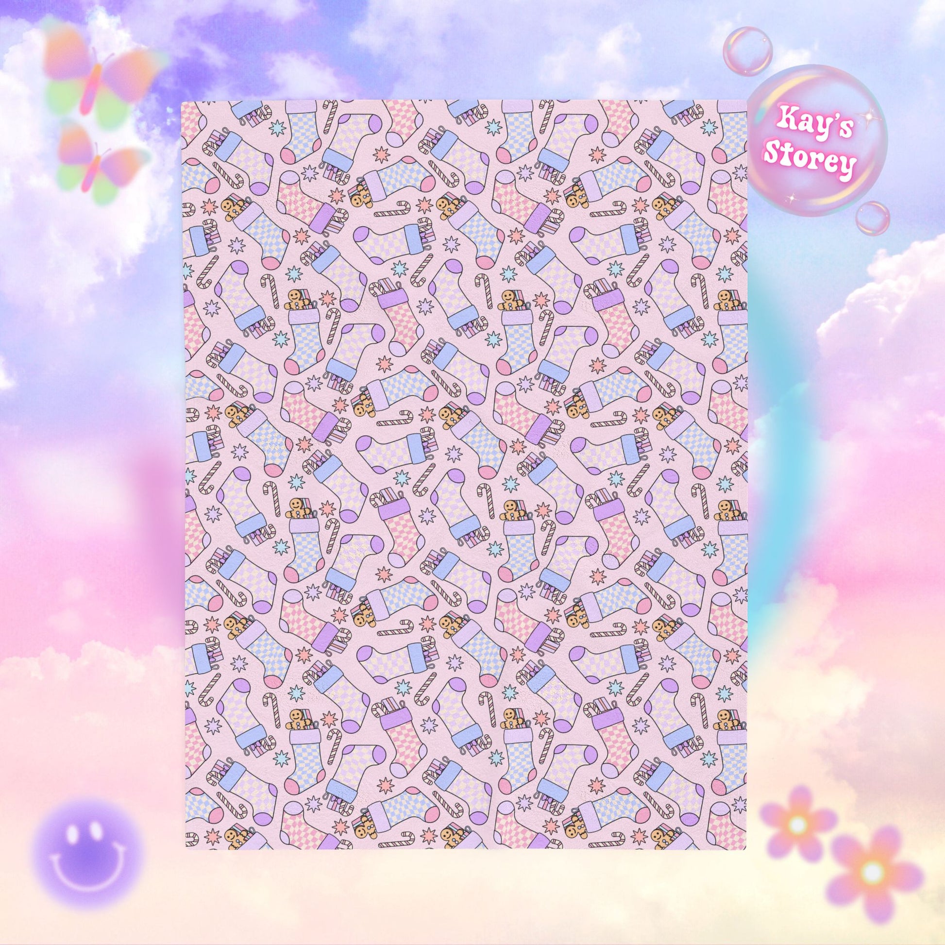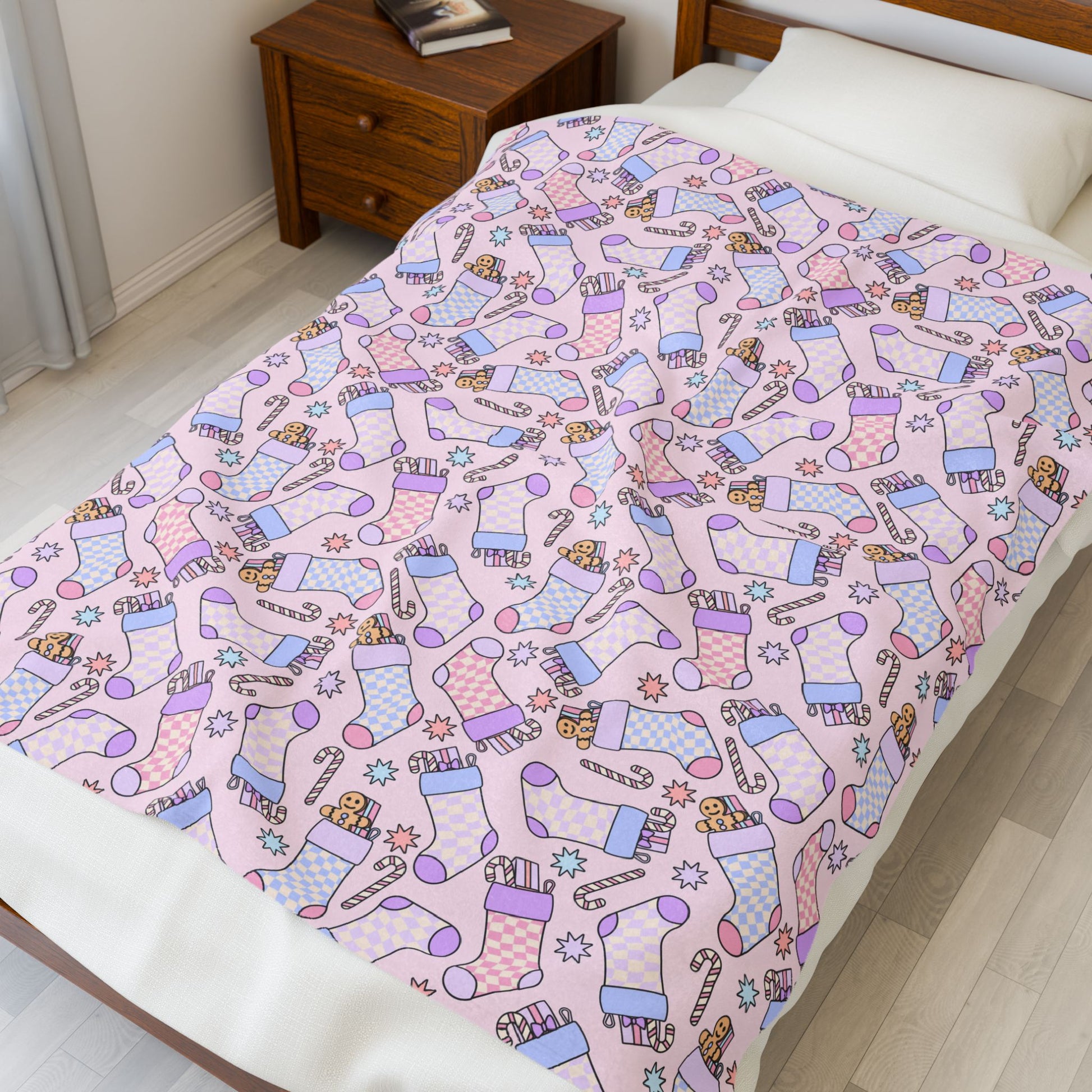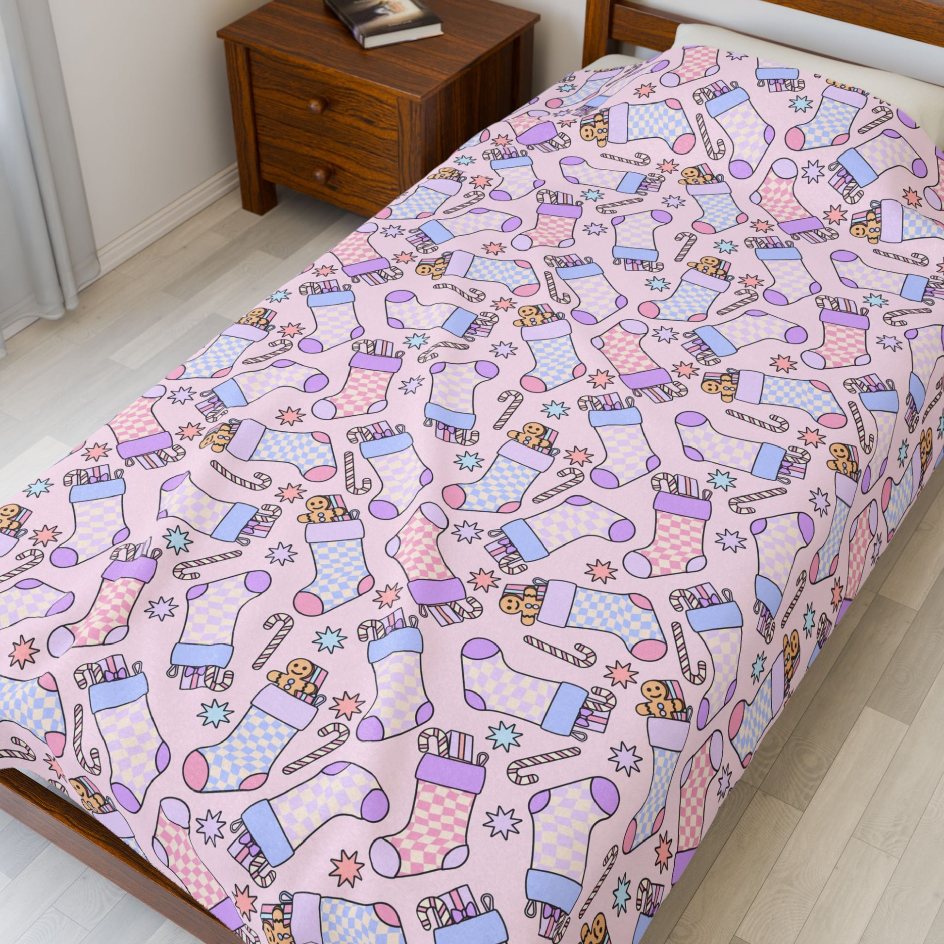 Christmas Stocking Bookish Velveteen Plush Blanket - Cozy Reading Throw