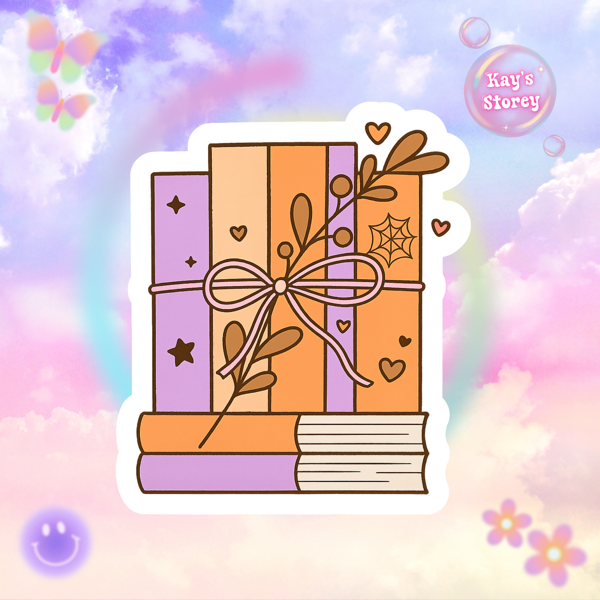 A cute and whimsical Halloween book stack, perfect for adding a touch of charm to your laptop, journal, or kindle. Ideal for adults who enjoy spooky and literary themes. Great for Halloween, book lovers, and ghost enthusiasts.