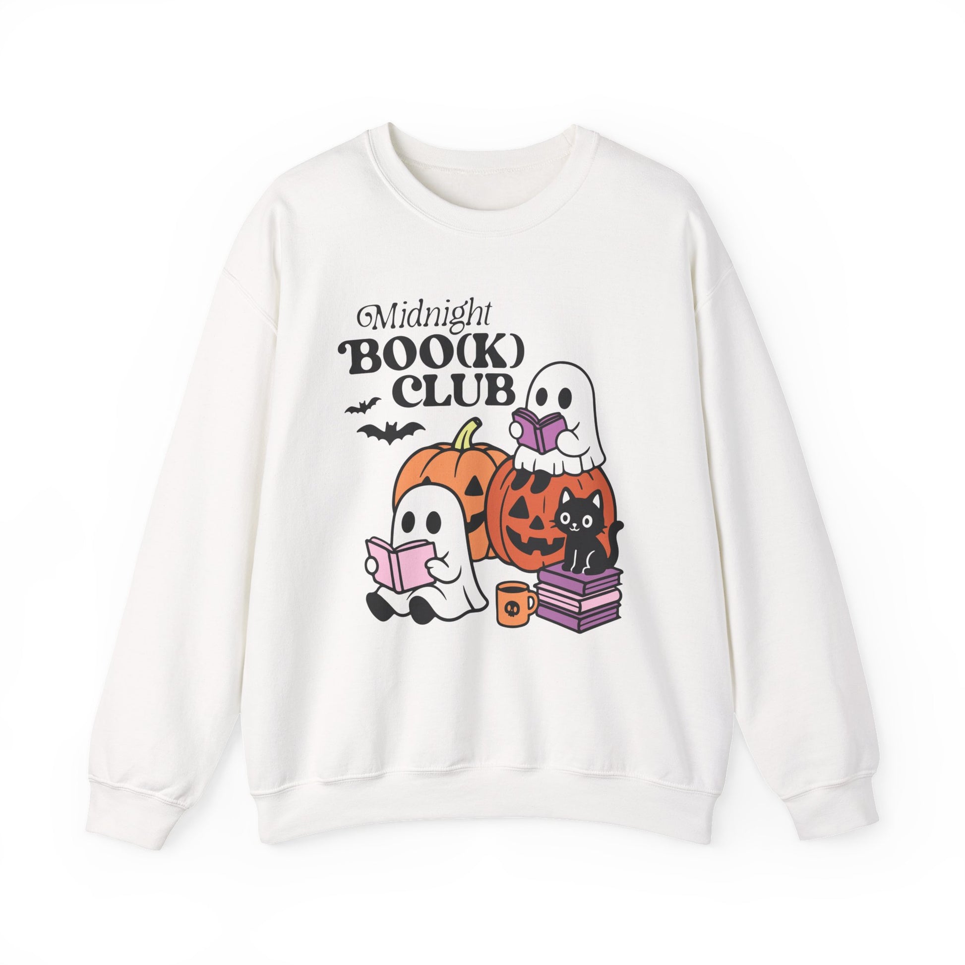 Stay cozy and stylish with this Midnight Boo(k) Club long sleeve sweatshirt, perfect for the Spooky Season. Ideal for book lovers looking for a unique gift. Embrace the eerie vibes and showcase your love for reading during Halloween and cozy fall nights. Suitable for adults. Product features - One-piece tubular knit construction reduces fabric waste - Ribbed knit collar for elasticity and shape retention - Made from 50/50 cotton-polyester blend for comfort and durability - Double-needle stitching for top-tier durability - OEKO-TEX certified dyes for safety and environmental standards Care instructions - Machine wash: cold (max 30C or 90F) - Non-chlorine: bleach as needed - Tumble dry: low heat - Do not iron - Do not dryclean