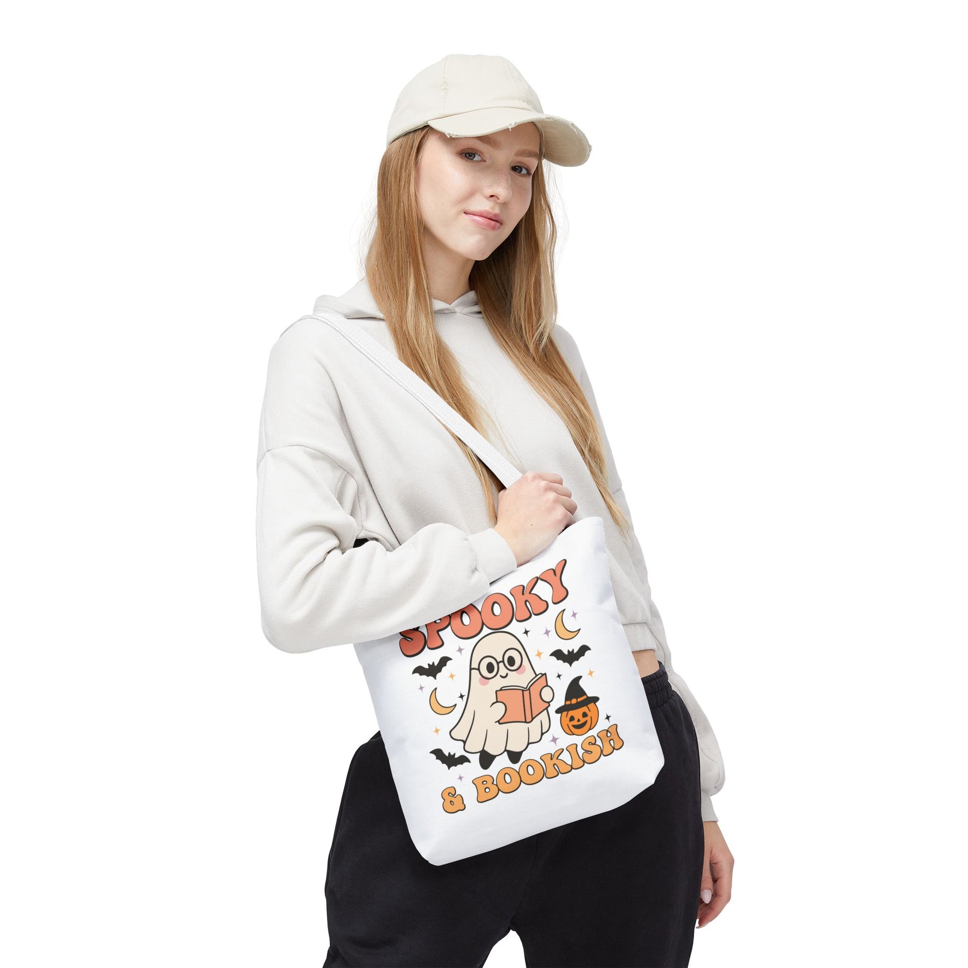 Spooky Season Book tote bag perfect for carrying books, groceries, or everyday essentials. Gives off a Halloween vibe and is ideal for those who love spooky season and fall festivities. Great for Halloween enthusiasts, bookworms, and anyone looking for a stylish and durable tote bag. Relevant for Halloween, fall season, book lovers, and everyday use.